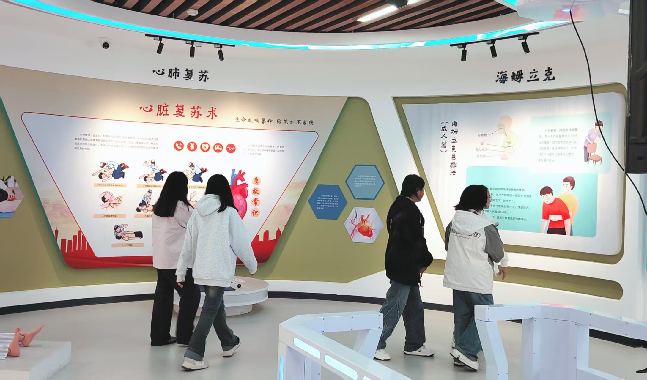 为保障参观效果,生命科学馆提前部署,安排专业教师全程负责知识讲解,同时配备工作人员维护现场秩序,确保各批次新生参观活动井然有序。馆内丰富的展陈内容与互动设施,为新生打造了立体的医学知识课堂:知识转轮、翻转互动装置等互动设备吸引新生主动参与,在动手操作中直观理解基础医学原理;互动大屏则通过动态演示,生动呈现常见疾病的发病机制与防治要点、急救知识的实操流程及中医养生的传统智慧。此外,馆内陈列的各类人体标本与植物标本,让抽象的医学概念变得具象可感,帮助新生建立对人体结构、生命机理的初步认知。