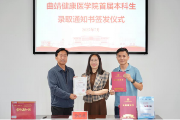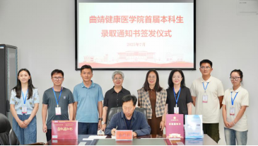 7月22日,曲靖健康医学院举行首届本科生录取通知书签发仪式。学校党委书记余祖林签发首届本科生(医学技术学院眼视光学专业)第一封录取通知书。党委委员、副校长雍怡敏、医学技术学院负责人、招生就业与对外交流处工作人员及学生代表参加签发仪式。