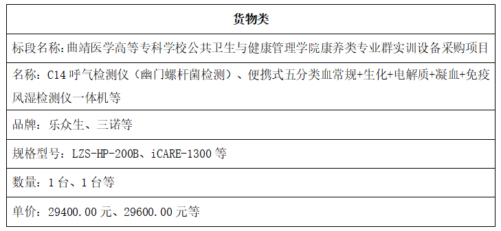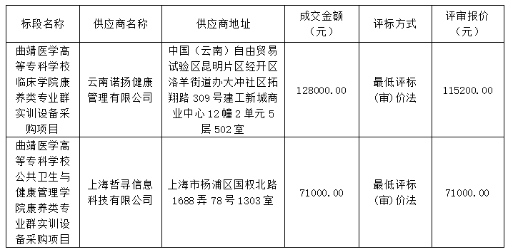 曲靖医学高等专科学校临床学院、公共卫生与健康管理学院康养类专业群实训设备采购项目